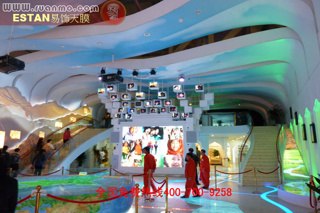 展館外觀以靈動(dòng)的曲線、層疊的“千年時(shí)光切片”結(jié)構(gòu),高度概括了寧夏集“山”、“川”、 “沙”、“湖”于一身的多元地貌和交錯(cuò)融合的多元文化特征。展館以回族伊斯蘭風(fēng)格為形,以沿黃城市帶發(fā)展為骨骼,以經(jīng)濟(jì)、科技、文化為血肉,以黃河水為魂,通過“朔色長(zhǎng)天”、 “鳳鳴塞上”、“寧靜致遠(yuǎn)”、“回民之家”等主題區(qū),映射出黃河腹地的富饒和塞上江南的秀美,呈現(xiàn)一個(gè)開放、多彩、融和、富饒與充滿生機(jī)活力的新寧夏。頂部藍(lán)天白云有易飾天公司制作